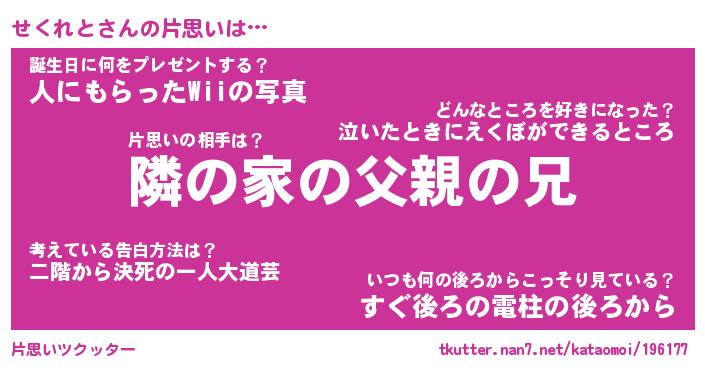 | ヘコむあだ名 | 『せくにゅー』『牛乳』『せくを』 |