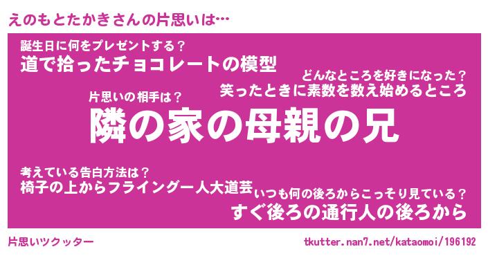 | 伝説のあだ名 | 『伝説の竜騎士えのもとたかき』 |