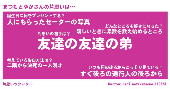 | ヒーロー風カッコイイあだ名 | 『スーパーマツモトユカ』『炎刃騎士マツ』 |
