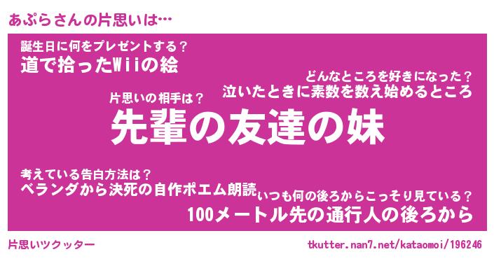 | ヘコむあだ名 | 『あぷっふぃ~』『豆乳』『あぷっぺ』 |