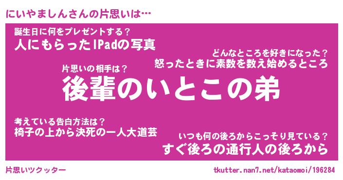 | ヘコむあだ名 | 『にいもー』『レバニラ』『にいっ子』 |