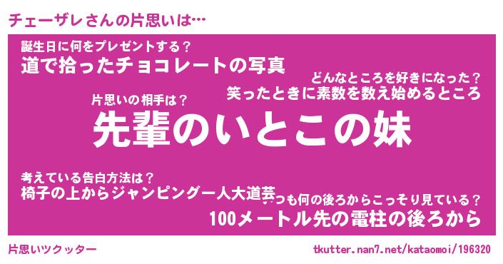 | 恥ずかしいあだ名 | 『プリティーチェーザレ』『チェっちょ』 |