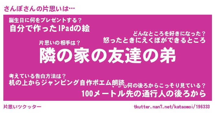 | 意味不明あだ名 | 『ペロリンさんぼ』『さんぼフォーエバー』 |