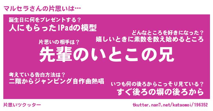 | 意味不明あだ名 | 『ペロリンマルセラ』『永久保存マルセラ』 |