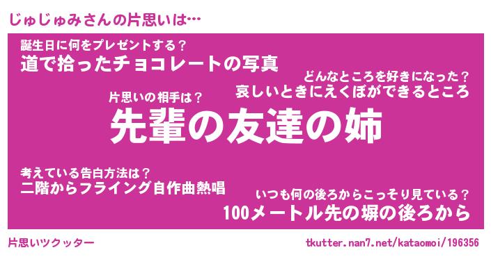 | ヘコむあだ名 | 『じゅっふぃ~』『つくし』 |