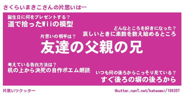 | 恥ずかしいあだ名 | 『プリティーさくらいまきこ』『さくちん』 |