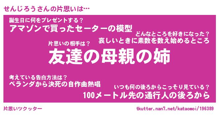 | 胡散臭い通販商品みたいなあだ名 | 『億万長者になれるブレスレット…その名も「せんじろう」』 |