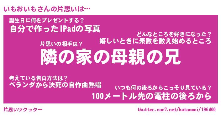 | ツイッター | いもおいもさんのツイッターID『kikurage_man』 |