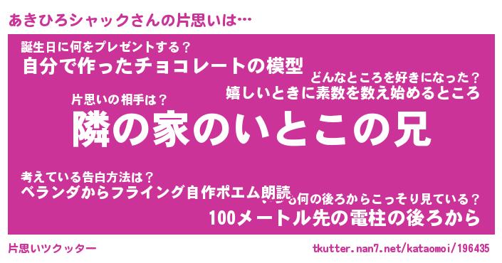 | 男性向けラノベタイトル風あだ名 | 『あきひろシャックの憂鬱』 |