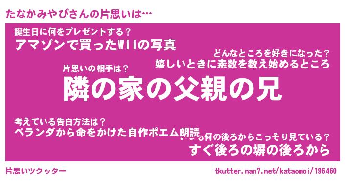 | 胡散臭い通販商品みたいなあだ名 | 『必ず成功するブレスレット…その名も「たなかみやび」』 |