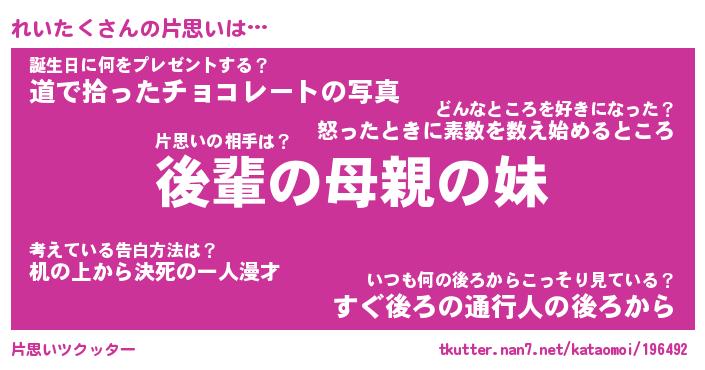 | ヘコむあだ名 | 『れいにー』『つくし』『れいお』 |