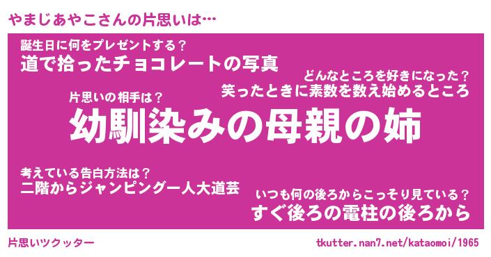 | 男性向けラノベタイトル風あだ名 | 『やまじあやこの憂鬱』 |