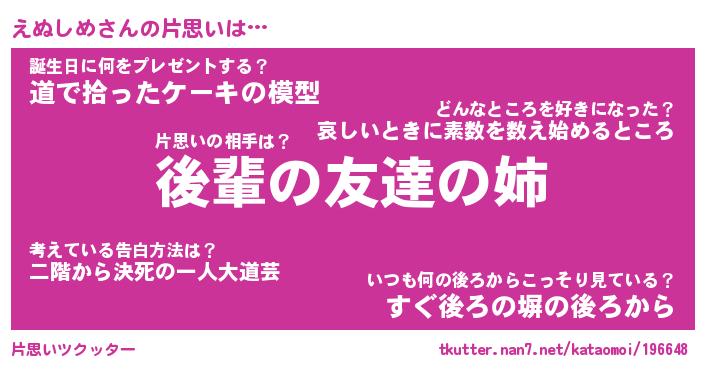 | 意味不明あだ名 | 『ペロリンえぬしめ』『永久保存えぬしめ』 |