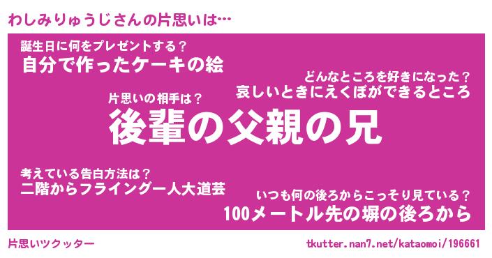 | 伝説のあだ名 | 『封印されし傭兵わしみりゅうじ』 |