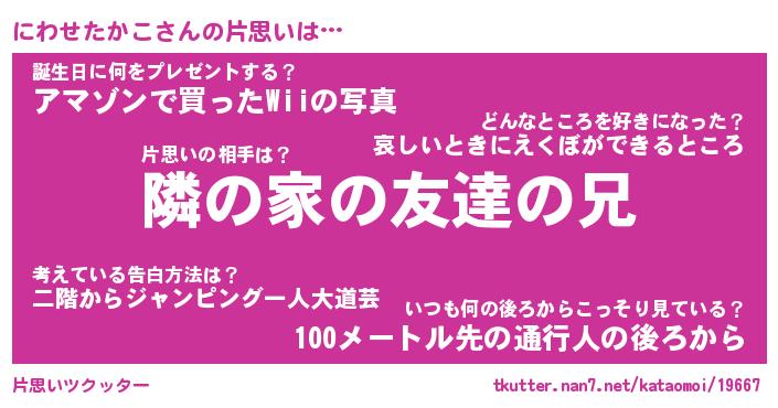 | ヘコむあだ名 | 『にわっふぃ~』『なまこ酢』 |