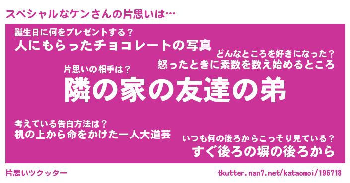 | 男性向けラノベタイトル風あだ名 | 『スペシャルなケンの憂鬱』 |