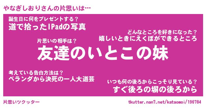 | 2回繰り返すあだ名 | 『やなやな』『ややなな』『いじいじ』 |