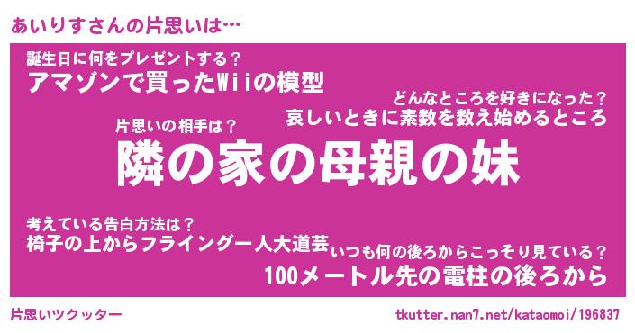| 意味不明あだ名 | 『ペロリンあいりす』『永久保存あいりす』 |