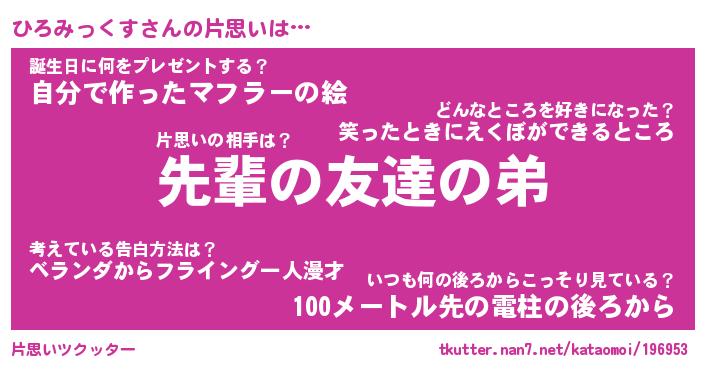 | ヘコむあだ名 | 『ひろっふぃ~』『つくし』『ひろお』 |