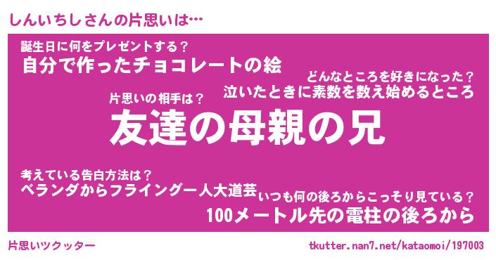 | ヘコむあだ名 | 『しんにー』『牛乳』『しんお』 |