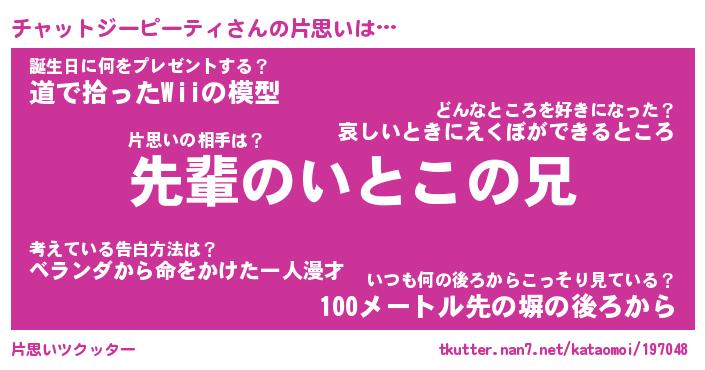 | 胡散臭い通販商品みたいなあだ名 | 『モテモテ間違いなし霊験あらたかなお札…その名も「チャットジーピーティ」』 |