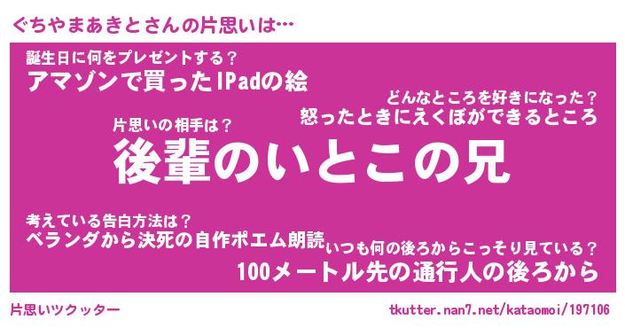 | 恥ずかしいあだ名 | 『プリティーぐちやまあきと』『ぐちちん』 |