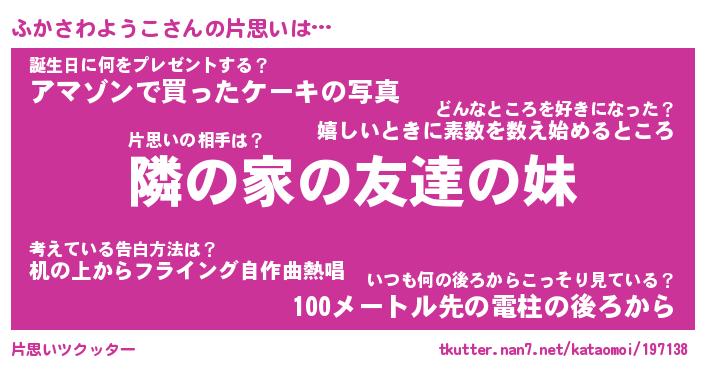 | 女子向けラノベタイトル風あだ名 | 『(仮)ふかさわようこのやんごとなき事情』 |