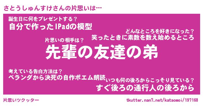 | 胡散臭い通販商品みたいなあだ名 | 『モテモテ間違いなし霊験あらたかなお札…その名も「さとうしゅんすけ」』 |