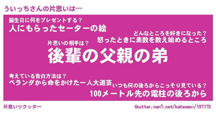 | 意味不明あだ名 | 『ペロリンういっち』『永久保存ういっち』 |