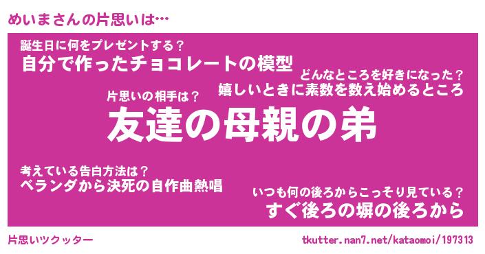 | ヘコむあだ名 | 『めいにー』『つくし』『めいっちょ』 |