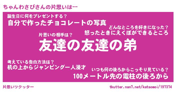 | ヘコむあだ名 | 『ちゃっふぃ~』『つくし』 |