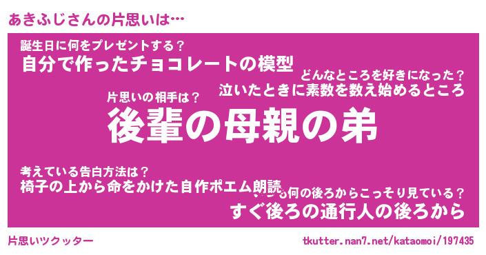 | ヘコむあだ名 | 『あきにー』『つくし』『あきっぺ』 |