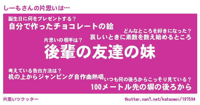 | ヘコむあだ名 | 『しーもー』『つくし』『しーお』 |