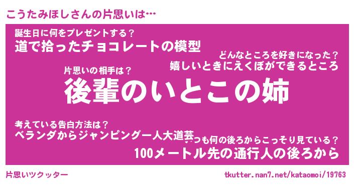 | 胡散臭い通販商品みたいなあだ名 | 『モテモテ間違いなし水晶球…その名も「こうたみほし」』 |