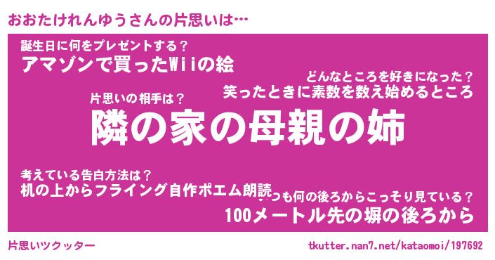 | 男性向けラノベタイトル風あだ名 | 『おおたけれんゆうの憂鬱』 |
