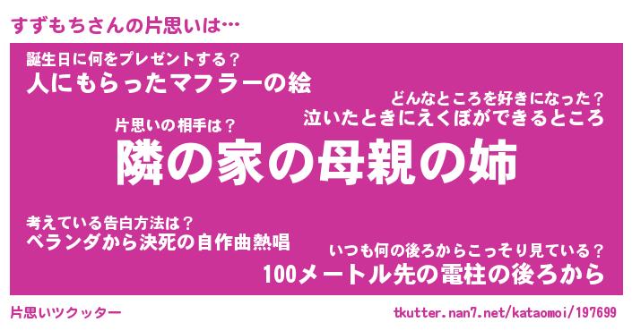 | 男性向けラノベタイトル風あだ名 | 『すずもちの憂鬱』 |