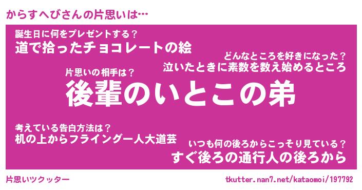 | 胡散臭い通販商品みたいなあだ名 | 『モテモテ間違いなし水晶球…その名も「からすへび」』 |