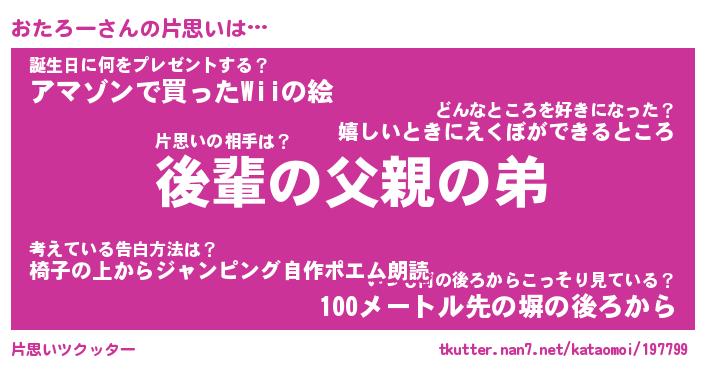 | 意味不明あだ名 | 『ペロリンおたろー』『永久保存おたろー』 |