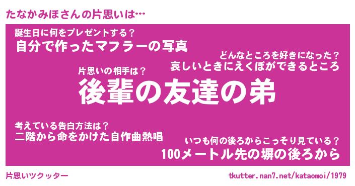 | 肩書あだ名 | 『たなかみほ御曹司』『たなかみほ班長』 |