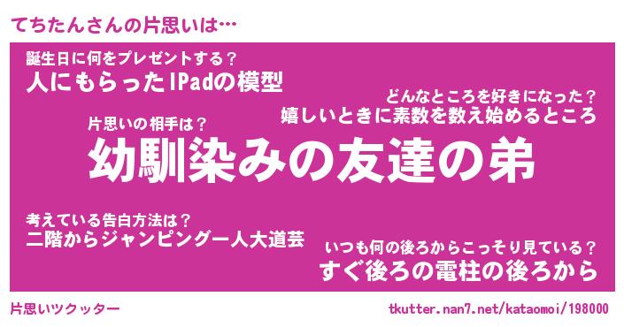 | 意味不明あだ名 | 『ペロリンてちたん』『永久保存てちたん』 |