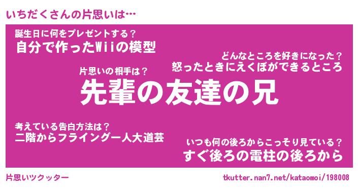 | ヒーロー風カッコイイあだ名 | 『スーパーイチダク』『幻影騎士イチ』 |