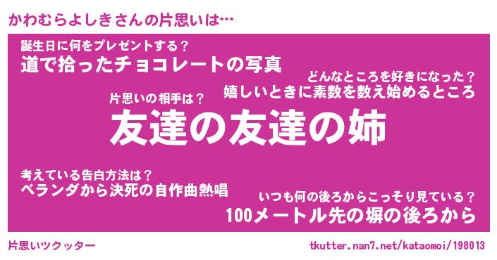 | 肩書あだ名 | 『かわむらよしき御曹司』 |