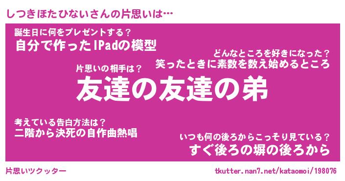 | ヘコむあだ名 | 『しつっふぃ~』『つくし』 |