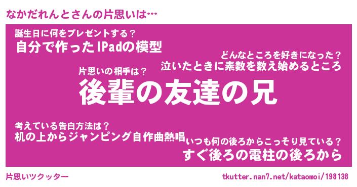 | ヘコむあだ名 | 『なかっふぃ~』『つくし』 |