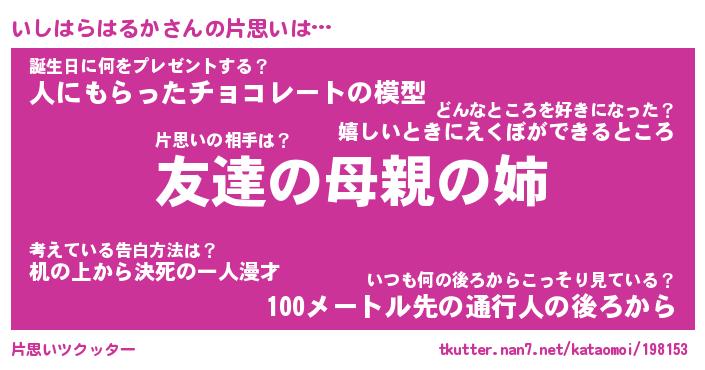 | 恥ずかしいあだ名 | 『プリティーいしはらはるか』『いしちん』 |