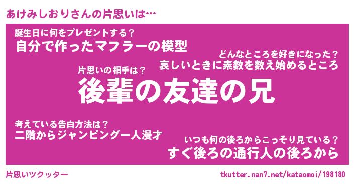 | ヒーロー風カッコイイあだ名 | 『スーパーアケミシオリ』『銀牙騎士アケ』 |