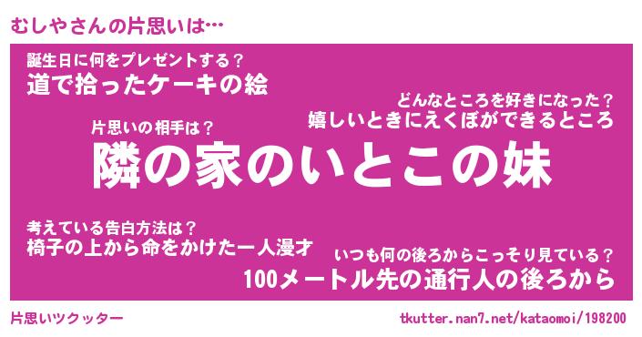 | 意味不明あだ名 | 『ペロリンむしや』『むしやフォーエバー』 |