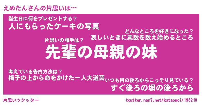 | 意味不明あだ名 | 『ペロリンえめたん』『永久保存えめたん』 |