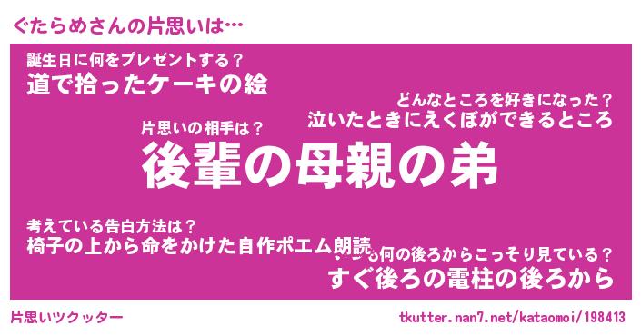 | 意味不明あだ名 | 『ペロリンぐたらめ』『永久保存ぐたらめ』 |