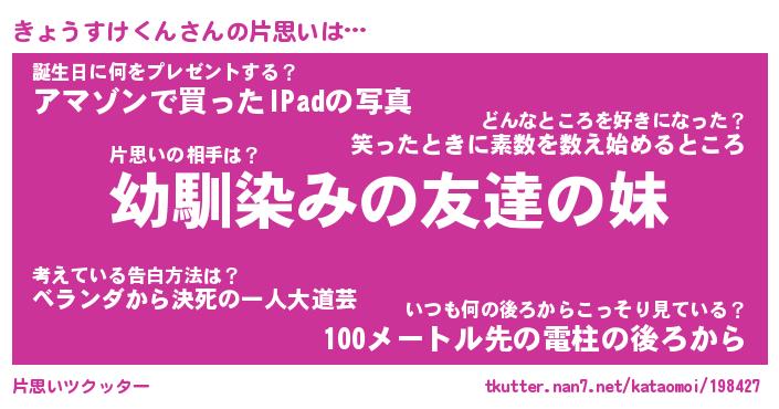 | 男性向けラノベタイトル風あだ名 | 『きょうすけくんの憂鬱』 |